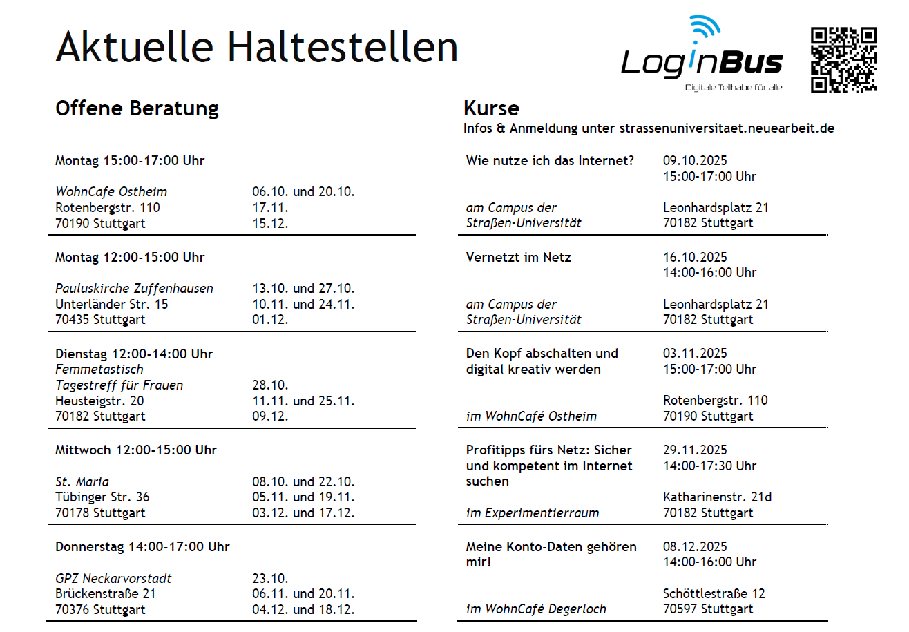 Mittwoch (alle 2 Wochen): vor St. Maria in der Tübinger Str. 36, 70178 Stuttgart